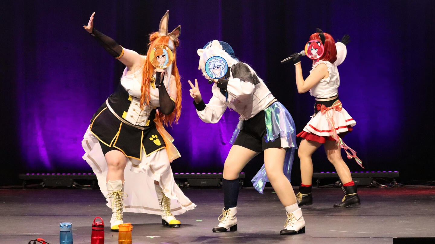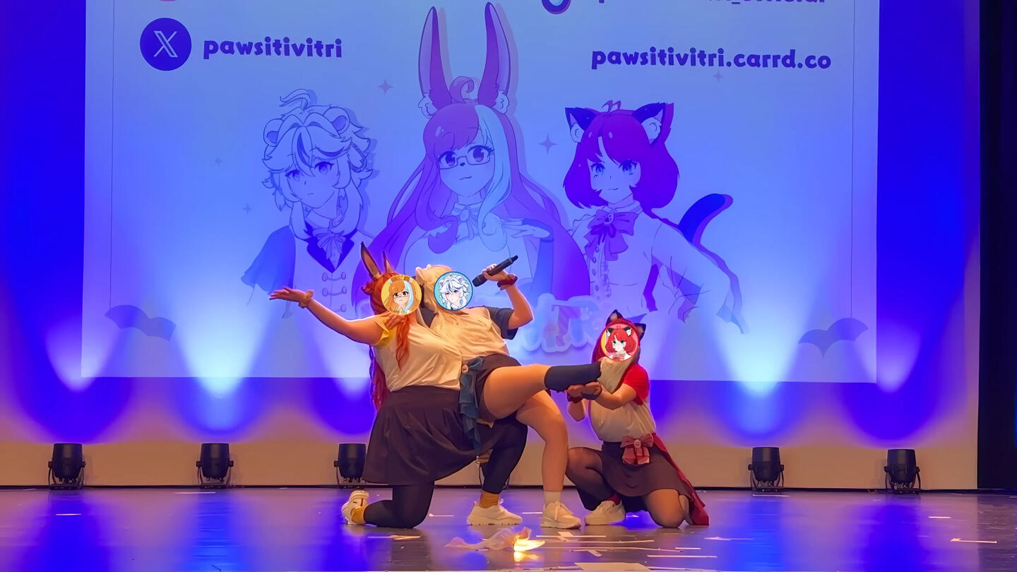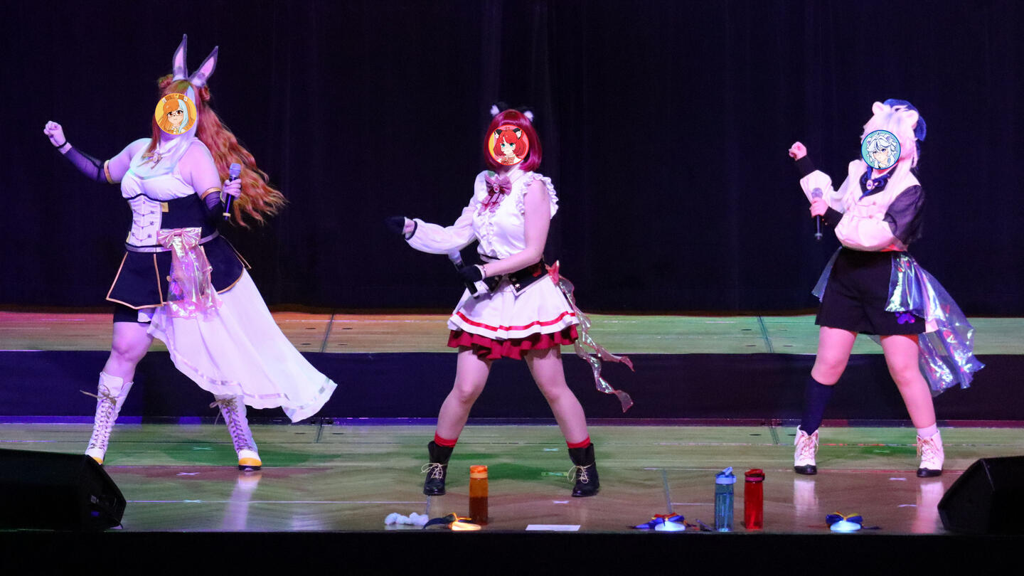 In unseren Shows performen wir unter anderem zu Liedern von Anime, Games und Vocaloid. Durch unseren dreistimmigen Gesang und die, zu jedem Song, choreographierte Tanz-pawformance, wollen wir dem Publikum die Gelegenheit geben dem anstrengenden Alltag zu entkommen und, gemeinsam mit uns, Spaß zu haben!