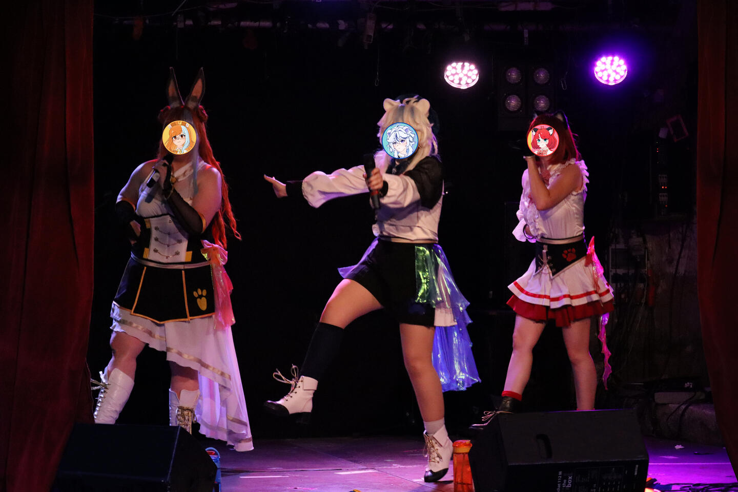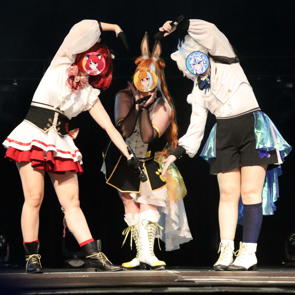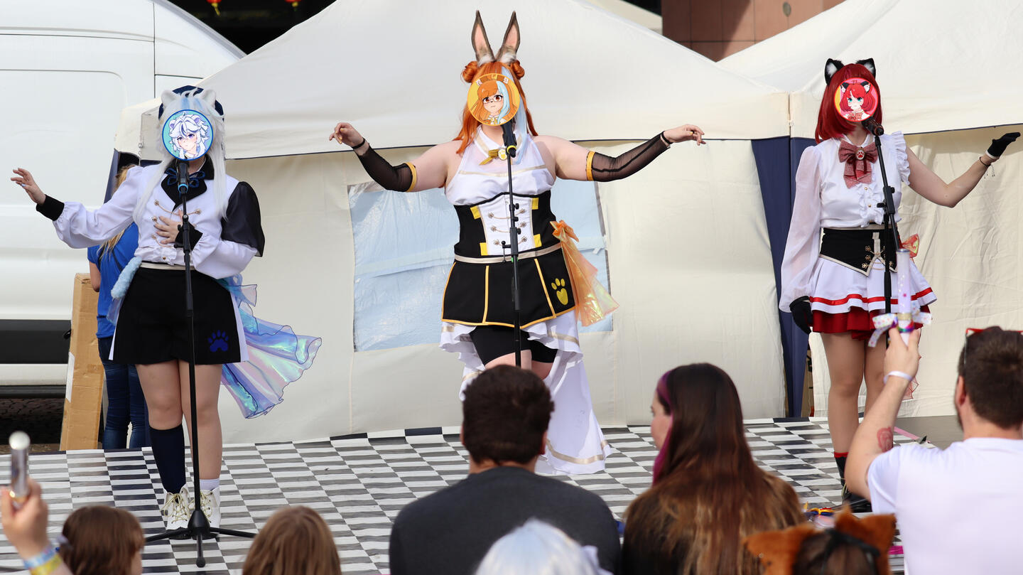 In unseren Shows performen wir unter anderem zu Liedern von Anime, Games und Vocaloid. Durch unseren dreistimmigen Gesang und die, zu jedem Song, choreographierte Tanz-pawformance, wollen wir dem Publikum die Gelegenheit geben dem anstrengenden Alltag zu entkommen und, gemeinsam mit uns, Spaß zu haben!